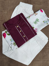 New Launching Magical Digital Print Kurti Set with Pant & Dupatta 🌸πŸ’₯ - Maroon / L