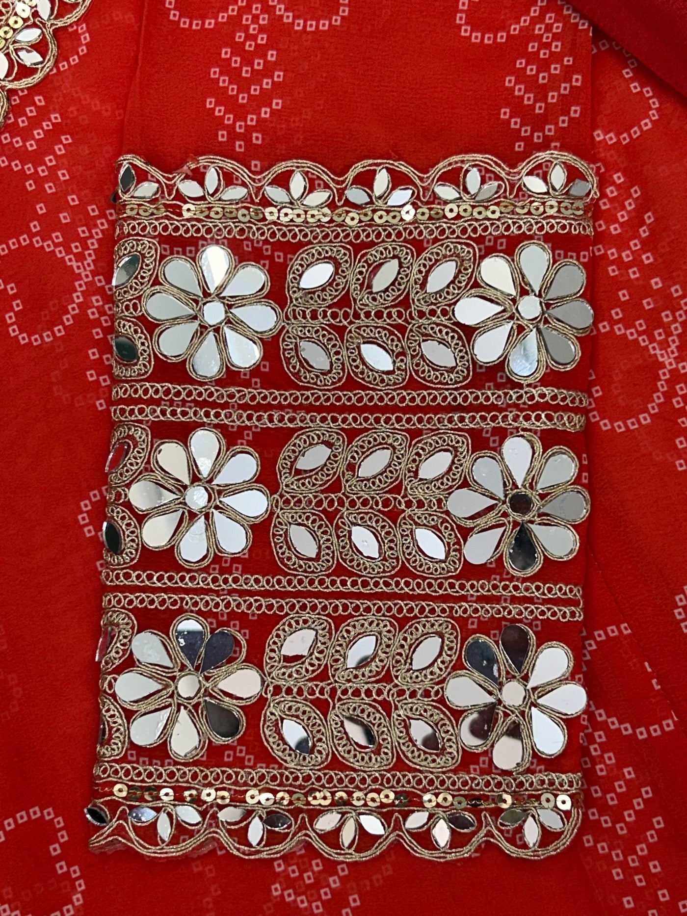 • Work: Coded Embroidery & 3mm Sequence with Original Mirror Lace Work on Sleeves & Yoke