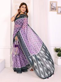 Purple & Black Ikat Printed Chanderi Saree | Geometric Ethnic Design with Designer Border | Lightweight Traditional Saree with Matching Blouse Piece – 5.5 Meters