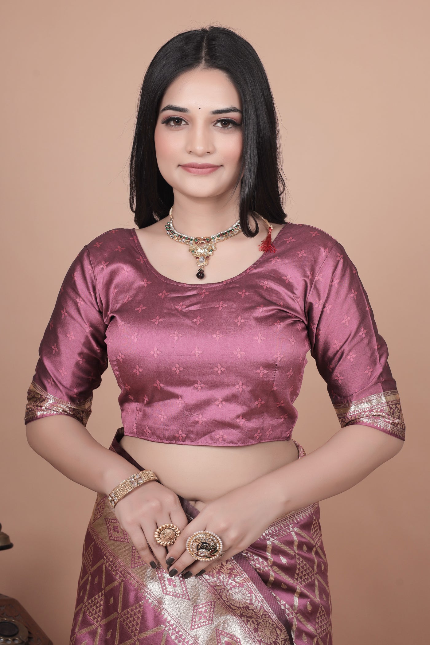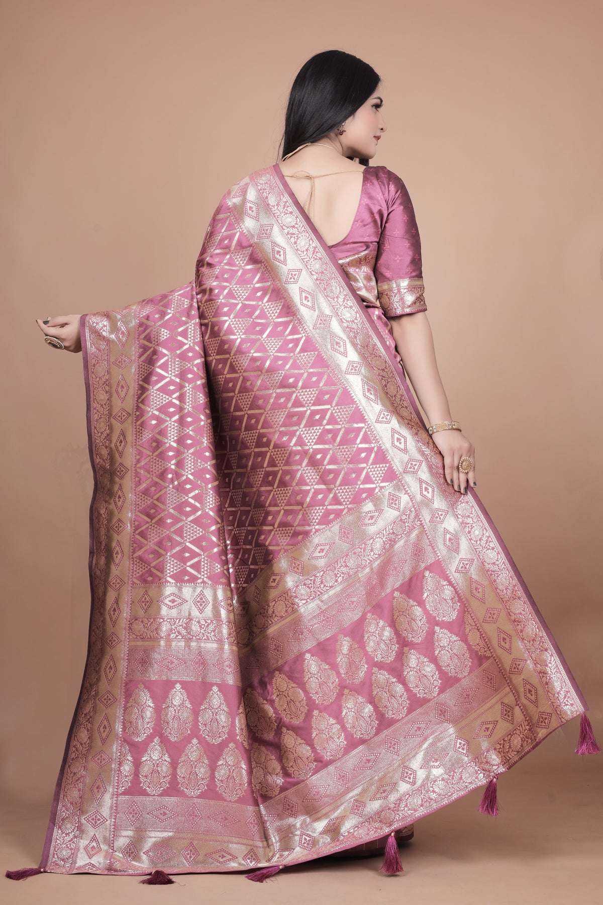 Mauve Banarasi Silk Saree with Silver Zari Elegance With 4 color option - Mauve with Silver Zari