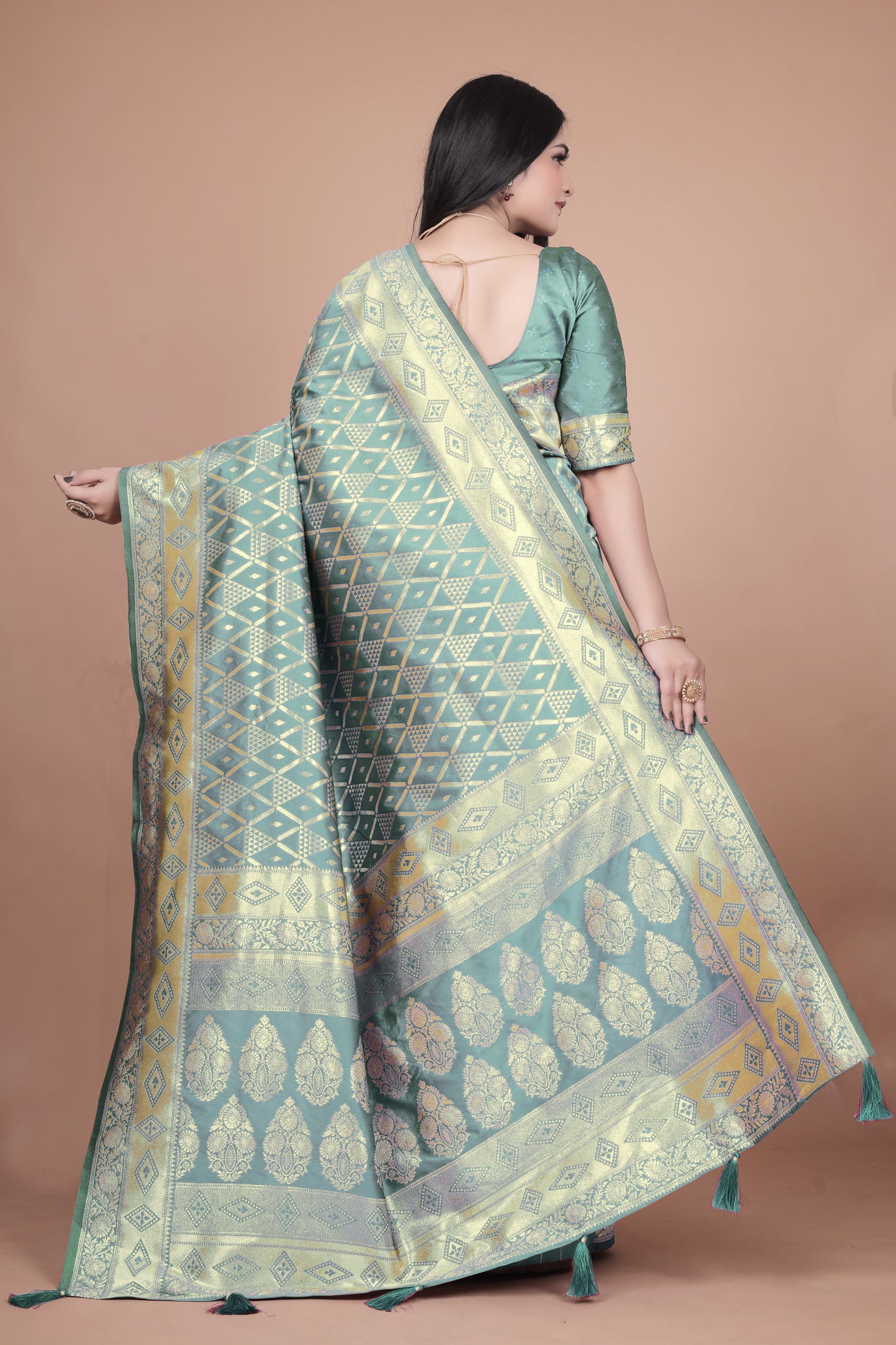 Mauve Banarasi Silk Saree with Silver Zari Elegance With 4 color option