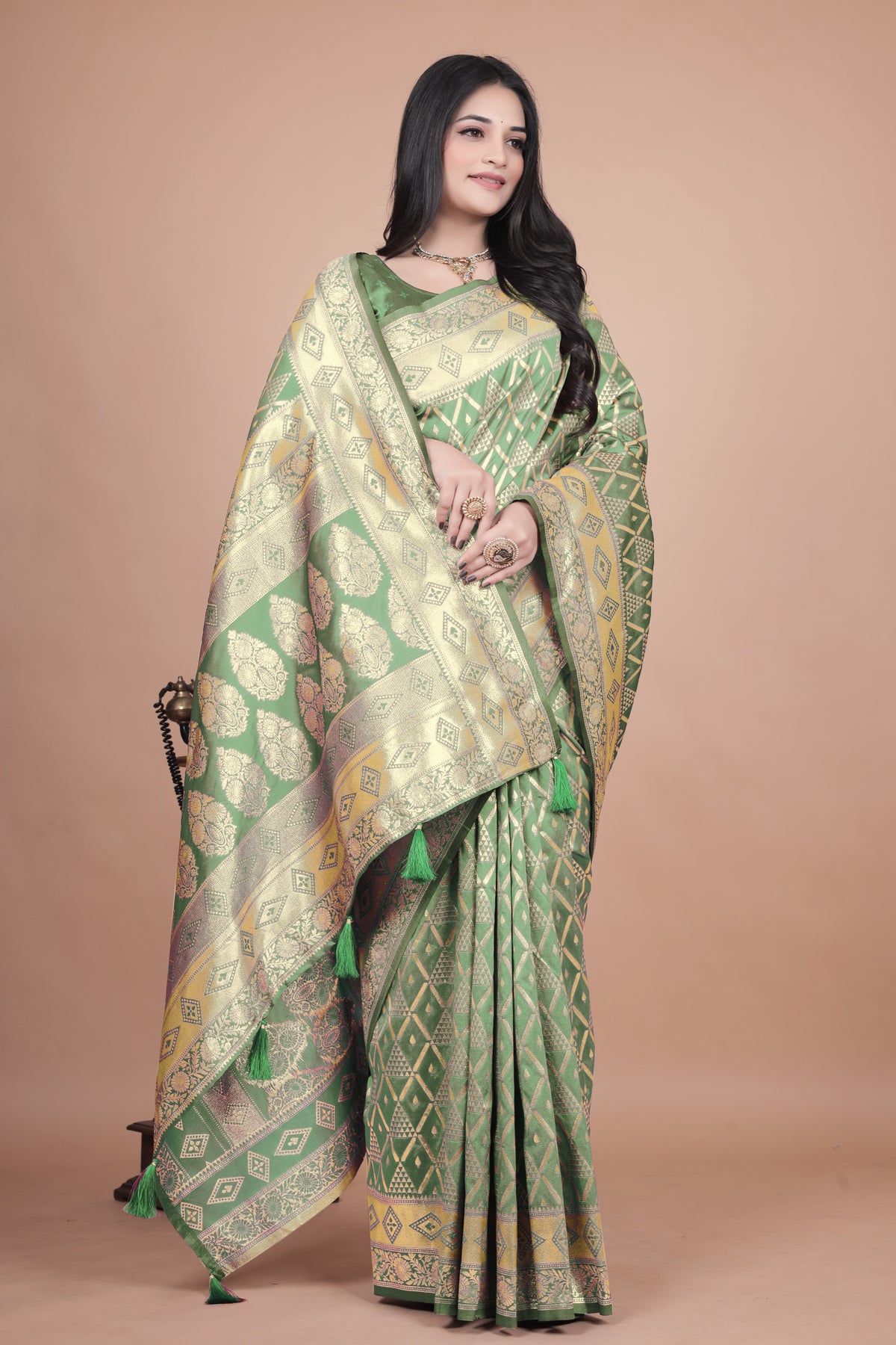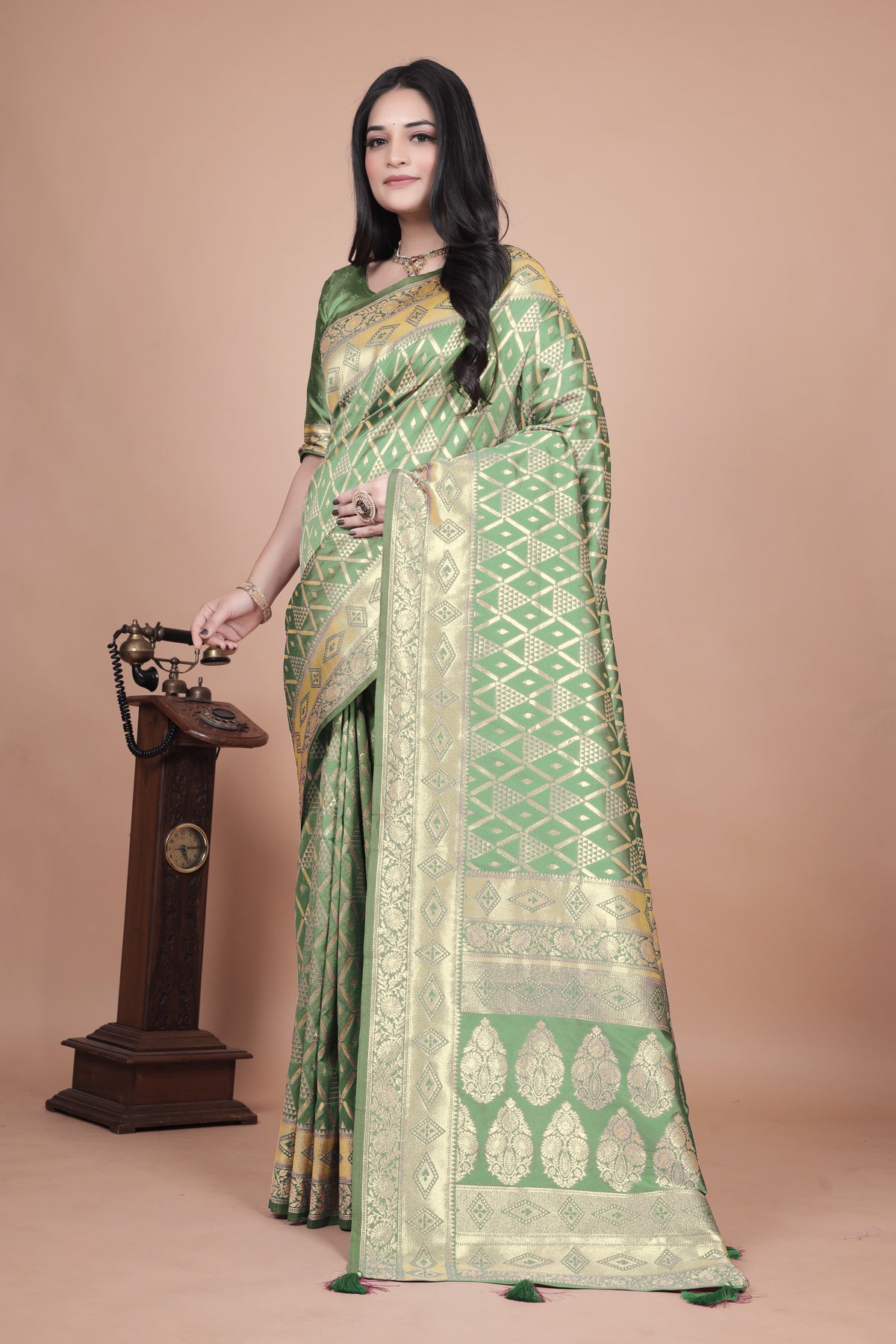 The luxurious silk fabric drapes like royalty 👑, while the finely woven silver zari adds a captivating shimmer with every step. Perfect for weddings, festive gatherings, receptions, and cultural celebrations—this saree ensures you shine with unmatched elegance. ✨