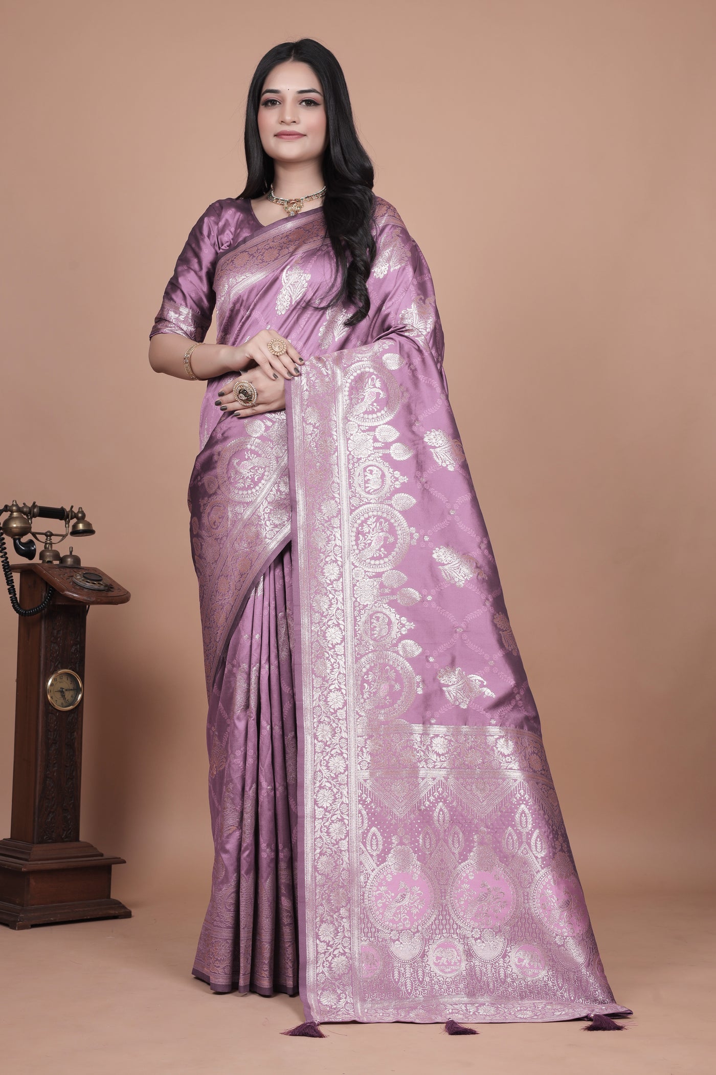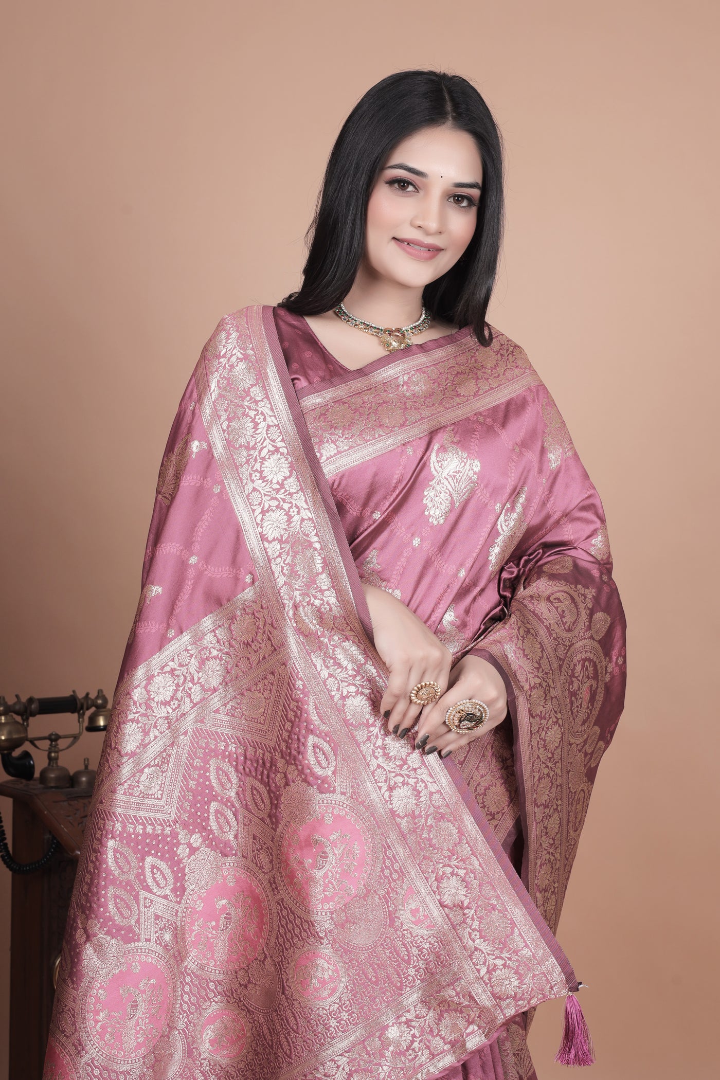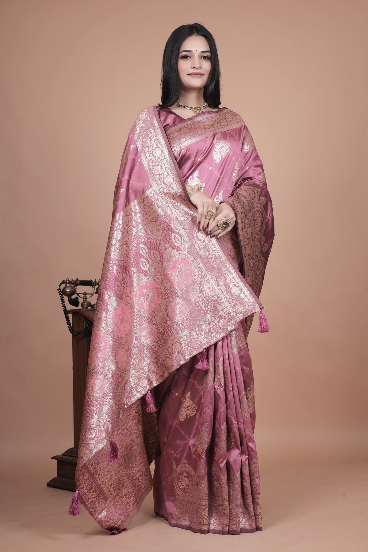 Banarasi Silk Saree with Intricate Silver Zari Weave with 4 color option ✨🌸 - Rose Pink with Silver Zari