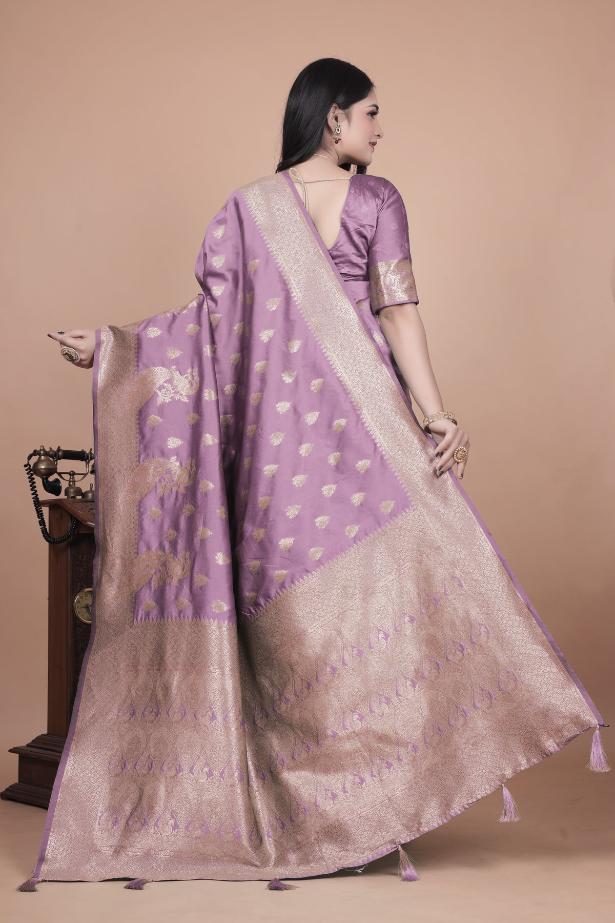 Drape yourself in timeless elegance with this luxurious Mint Green Banarasi Silk Saree, beautifully adorned with intricate golden zari motifs. 💛 The saree features regal peacock patterns woven delicately across the body, symbolizing grace and prosperity.