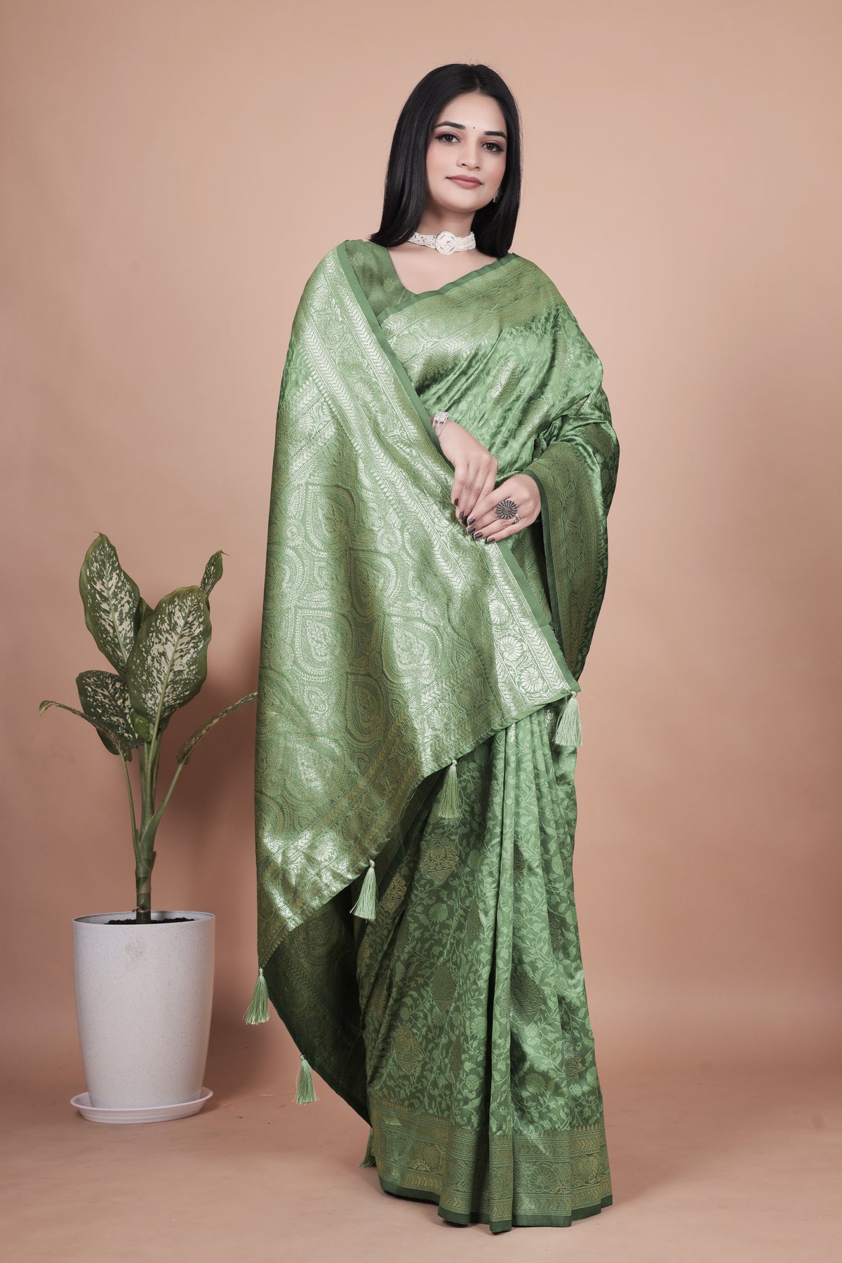 Banarasi Silk Saree with Gold Zari Butti & Ornate Pallu with 4 color option ✨💠 - Pastel Teal with Gold Zari