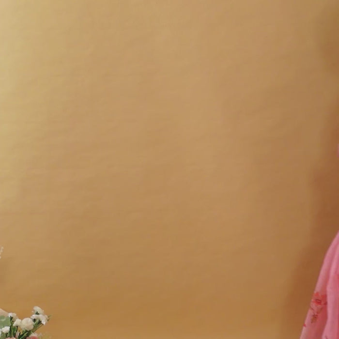 🔹 Color: Rose Pink Base with Multi-Color Floral Print, Magenta/Maroon Border
