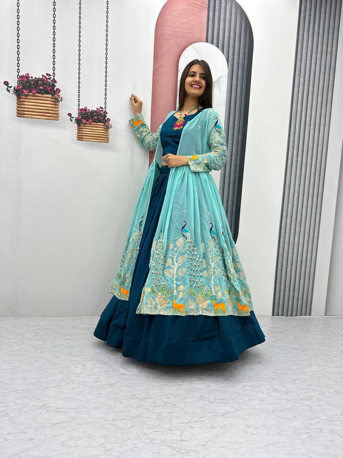 All our outfits are made from premium-quality fabrics such as silk, georgette, chiffon, cotton, organza, and linen. Each product description mentions the exact fabric used, so customers can choose according to comfort and occasion.